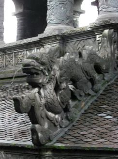 ![]() セメントは、当時は貴重品だったのでセメント造り(現在では安っぽく見えてしまいます)で、手すりは龍が・・・ |
