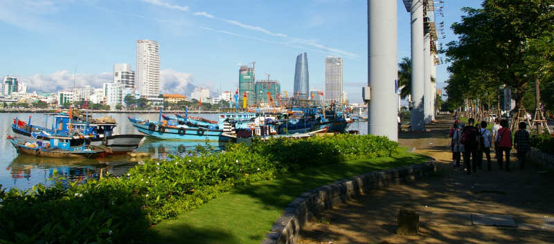 ![]() ダナンリバーサードホテル前から『ドラゴン橋』 Amのフリータイムを対岸の教会まで歩く事に・・・? 気温は夏日か? |