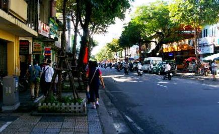 ![]() 「あれっ!昨日の夕食レストランだがや!」と言いつつドラゴン橋に向かって日陰側を歩く。 |