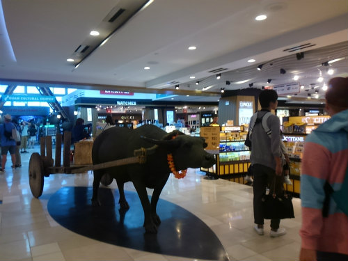 ![]() グアム空港の免税店・・・たくさん買い過ぎて?水牛が運んでくれました。 |