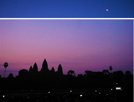 ![]() Am6:00 三日月とアンコールワット (日の出6:30待ち) |
