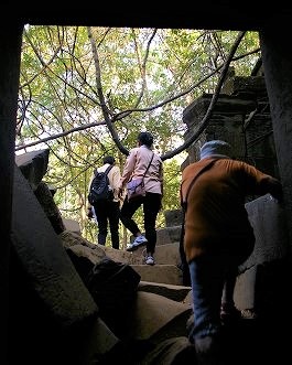 ![]() 遺跡の中はほぼ発見された当時のままの状態です。 塀や建物が崩壊し、苔むし薄暗い! |