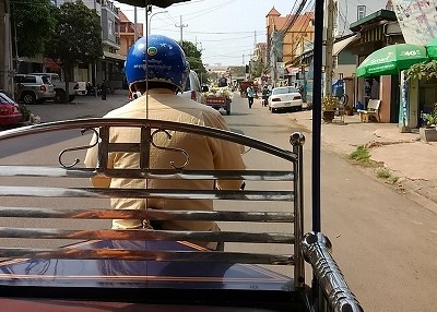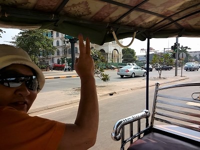 ![]() Pm12:30に予約したトゥクトゥクの場所へ・・・朝と違う人が声をかけてきたので、手を振って断ると 「アンコールホテル」「NO1」と言うので??・・・「NO1」は朝乗せてもらったトゥクトゥクのNOだが? どうも代わりに迎えに来てくれたのが分かり乗り込んだ。 |