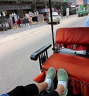 ![]() ホテル前にいるトゥクトゥクに乗り(料金は$3>$2に交渉)オールドマーケット方面に(12:30に迎えに) |