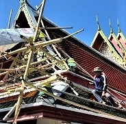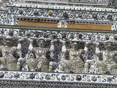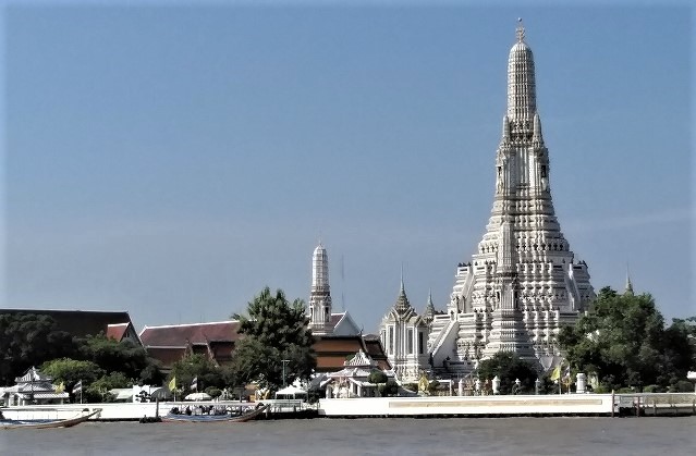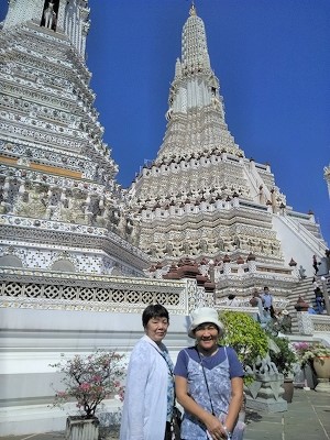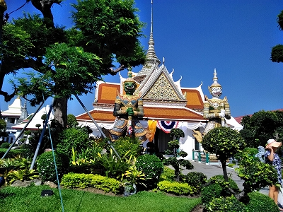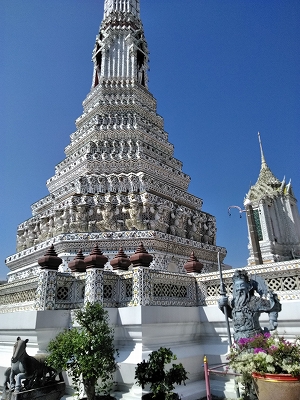 ![]() 暁の寺ワットアルンの『ワット』はタイ語でいう“お寺”、『アルン』は“暁”を表します。 三島由紀夫の小説の舞台にもなった“暁の寺”です。 |