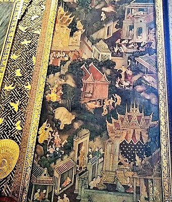 ![]() 『涅槃仏寺院』(ワット・ポー) 内部の壁面には釈迦の物語がびっしりと描かれています |