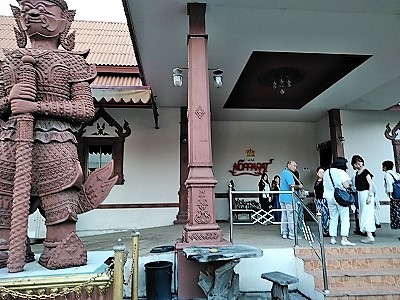 ![]() 巨大な2体2mの鬼(タイ語で“ヤック”)の門番に両脇をがっちりと守られた、本堂の入り口です。 |
