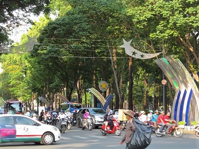 14:05ホーチミン>統一会堂>サイゴン大教会>中央郵便局>タンディン教会>ショップ>ホテル