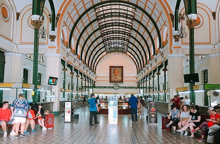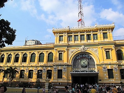 ![]() サイゴン中央郵便局 フランス・パリのオルセー駅の駅舎をイメージした外観となっております。 |