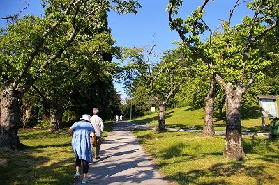 ![]() 『クイーンエリザベス公園』 桜の木の選定が日本と違う(頭を切って横に幾つも枝分かれ) |