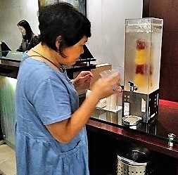 ![]() エレベーターに乗る前にタッチパネルで>ゲストルーム>No7>次に来るエレベーターに乗る |