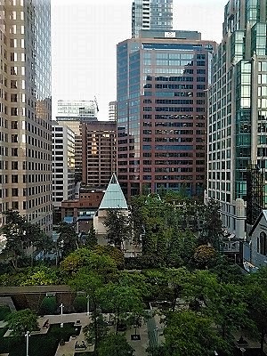 ![]() 7階のカーテンを開けると! 正面はチャペルです |