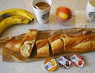 ![]() 6:30朝食は前日パブリックマーケットで買ったパンと果物 8:45キャピラノ無料バス |