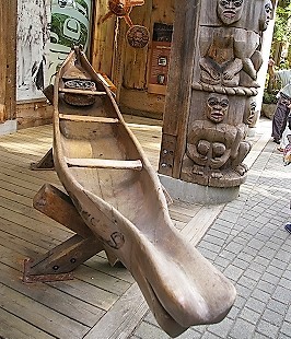 ![]() 約8千年前からこの地で鮭漁をし、木の実を集め、赤杉でトーテムポールを作り、豊かな自然と共存しながら暮らしていた。 |
