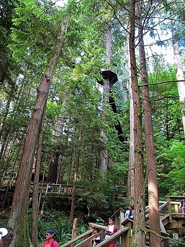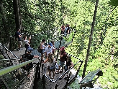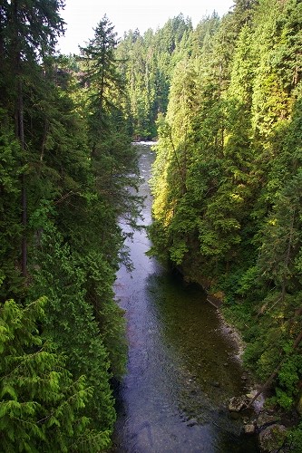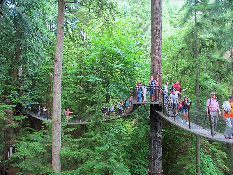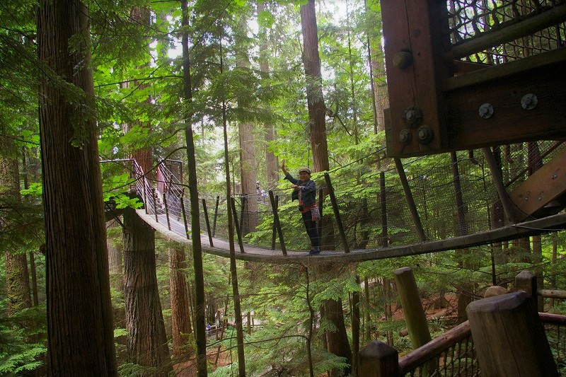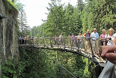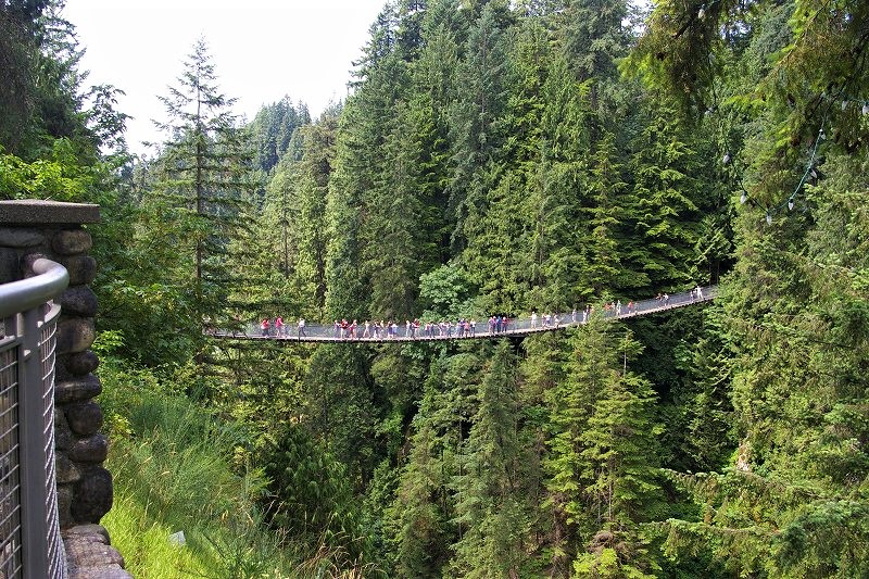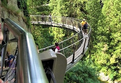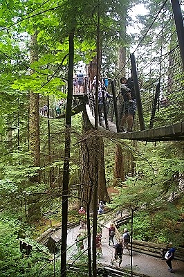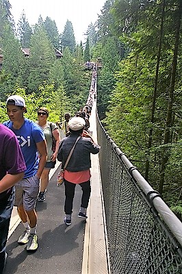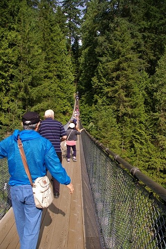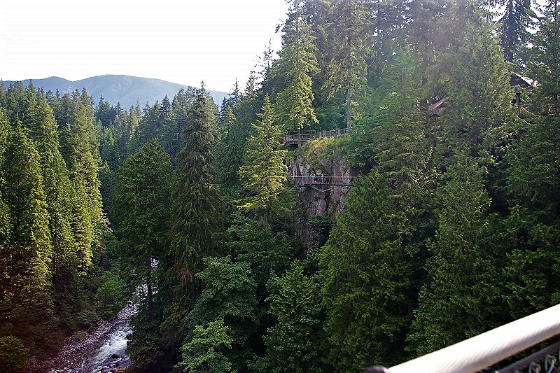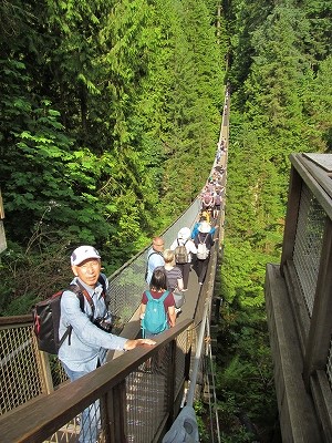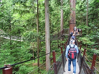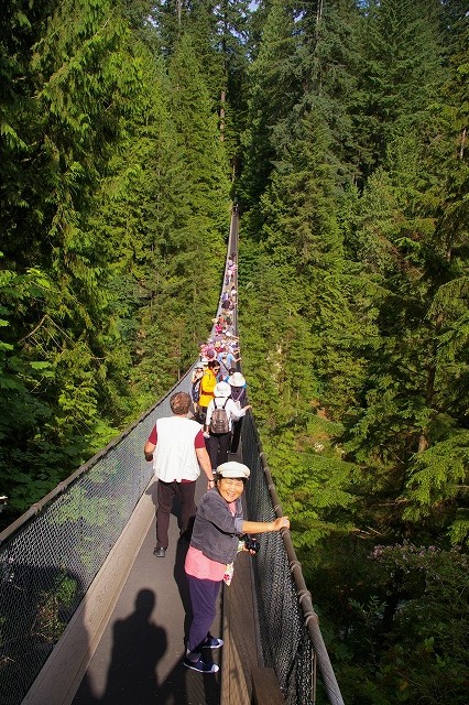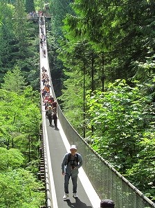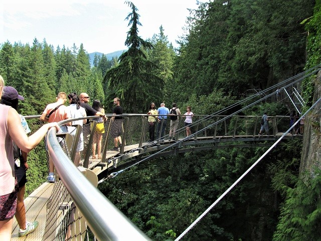 ![]() キャピラノ吊り橋137m 渡り切るとクリフウォークという遊歩道があります。歩行者用としては今も世界最長です。 |