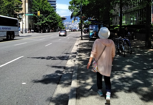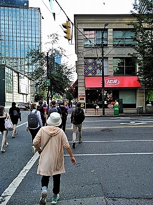 ![]() 横断歩道の信号はすぐ変わり、車優先ですね! |
