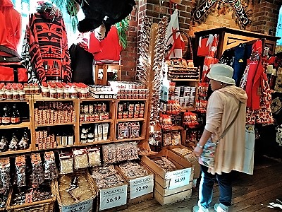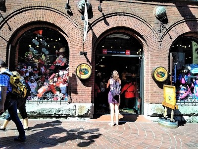 ![]() 蒸気時計のすぐ近くの混雑している土産物屋で買物中です |