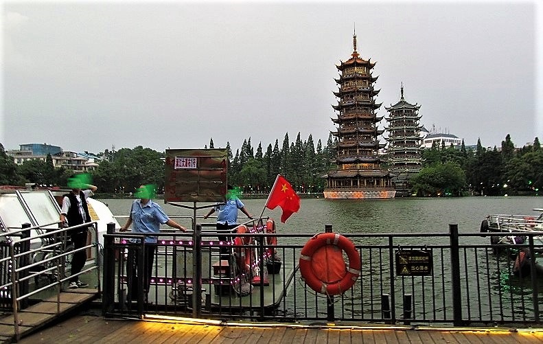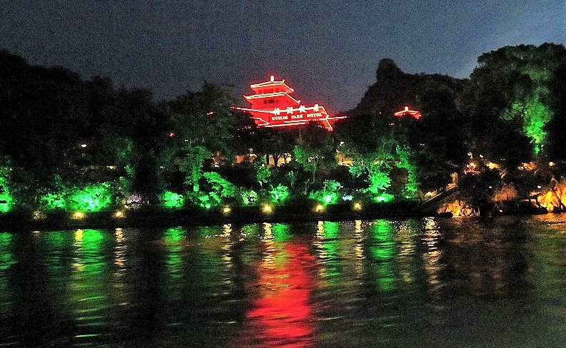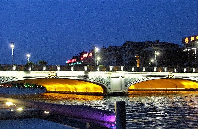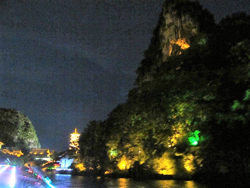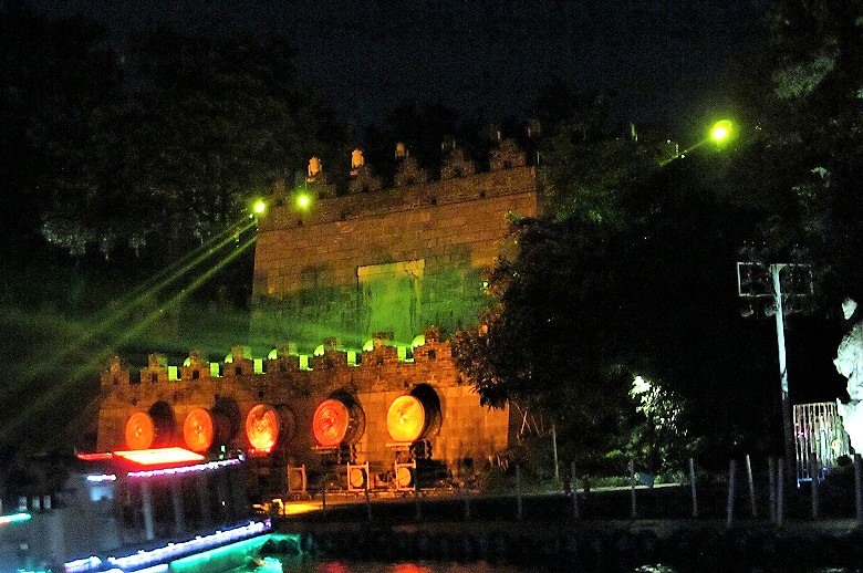 ![]() 観光のためにライトアップされた金銀双塔の日月塔 |