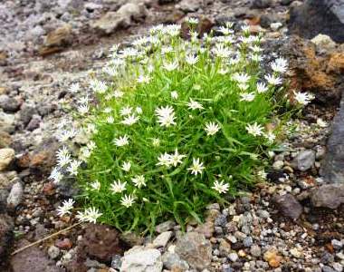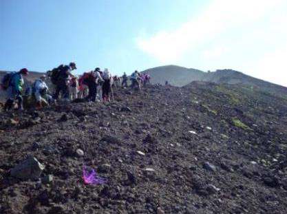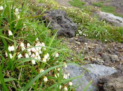 ![]() 約2時間で山頂に? 足元には可憐な花が |