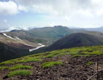 ![]() ![]() 標高2,000m前後の山々ですが、緯度が北に位置しているため、本州3,000m級の山々に匹敵する高山環境をもつ。 |