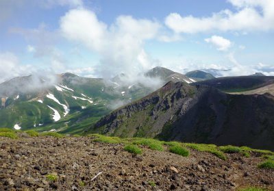 ![]() 百名山の一つ>>標高2,291mの 北海道最高峰旭岳 |