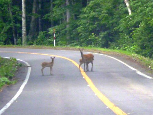 ![]() 霧の中に鹿の親子が! |