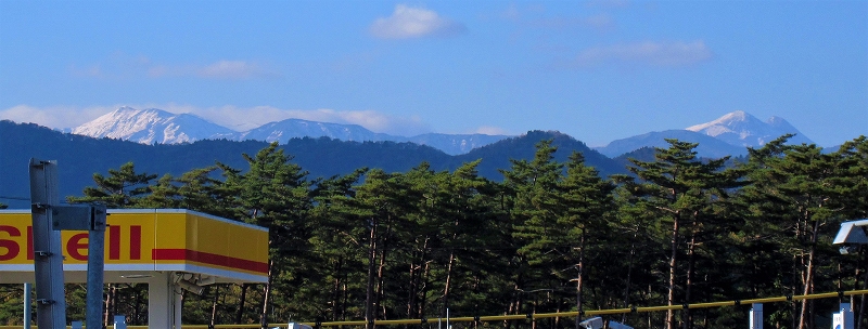 ![]() 北アルプス白山の峰々(ひるがの高原SAより) |