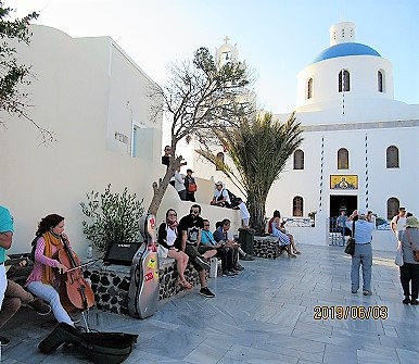 ![]() サントリーニ島の青いドームの教会 |
