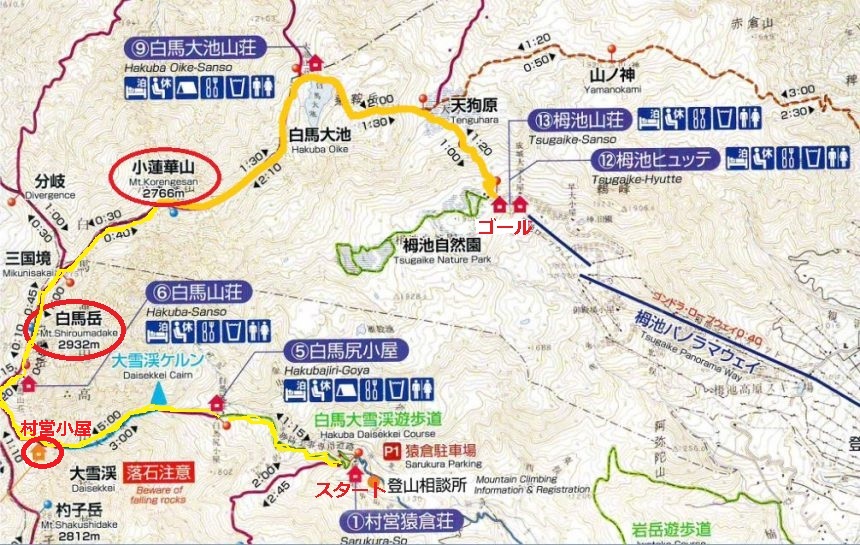 ![]() 猿倉から歩き始め==大雪渓==村営頂上宿舎泊==白馬岳==栂池ロープウェー |