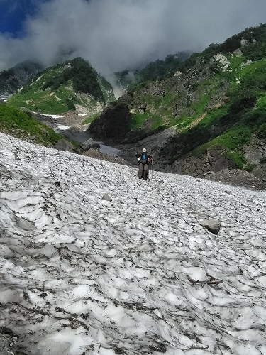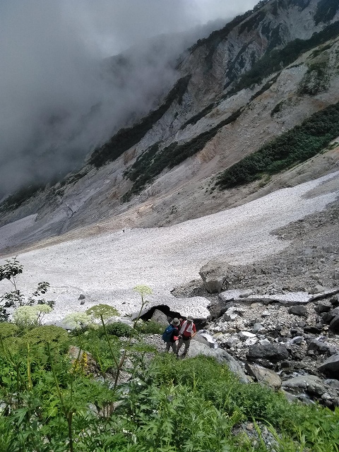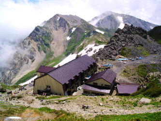 ![]() 白馬尻小屋===全長3.5km、標高差600mある日本では最大規模の雪渓です |