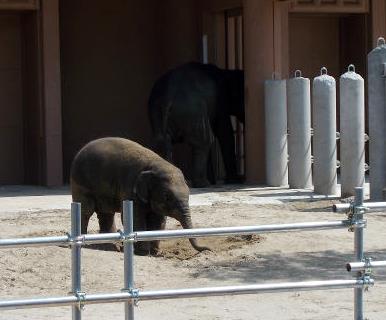 ![]() 園内放し飼いのゾウも花見見物 平成25年1月29日に東山で初めて誕生したアジアゾウ(スリランカゾウ)の赤ちゃんが見えました |