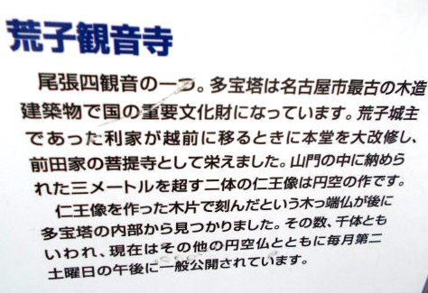 ![]() 『荒子観音』 開祖は信仰の山・白山を開いた泰澄(たいちょう)といわれ、奈良時代(729)に創建。 織田信長の比叡山焼き打ちに絡んで焼失したが、前田利家によって1576年に再興。 |