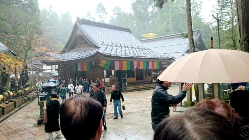 ![]() 高野山御供所 毎日朝の6時と10時半の2回、弘法大師様にお供えするお食事が御供所(写真右の 建物)から 運び出され、まず嘗試(あじみ)地蔵に味を見てもらってから弘法大師廟へと 向かいます。 |