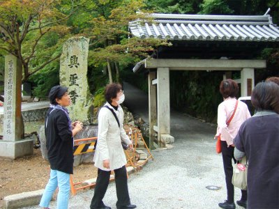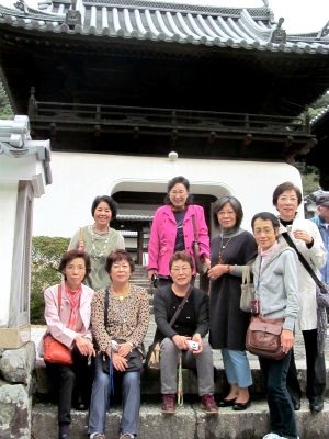 ![]() 興聖寺山門で記念写真 竜宮造りの山門(楼門)、続いて薬医門をくぐると石組みの庭園 |