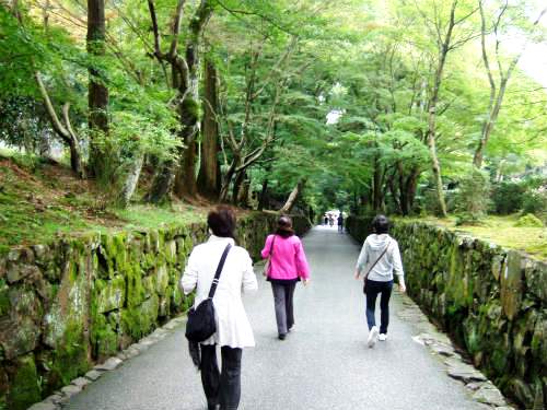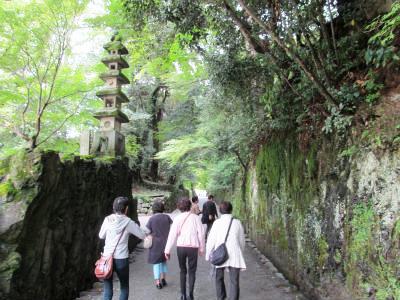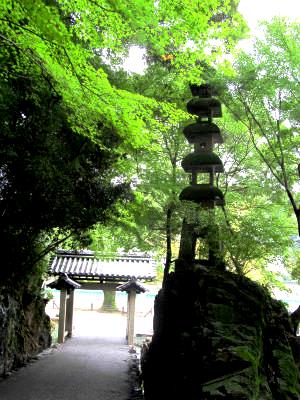![]() 本堂までの緩やかな琴坂は苔むした石垣が続く。 古きを眺めながらガンバって本堂をめざします。 |
