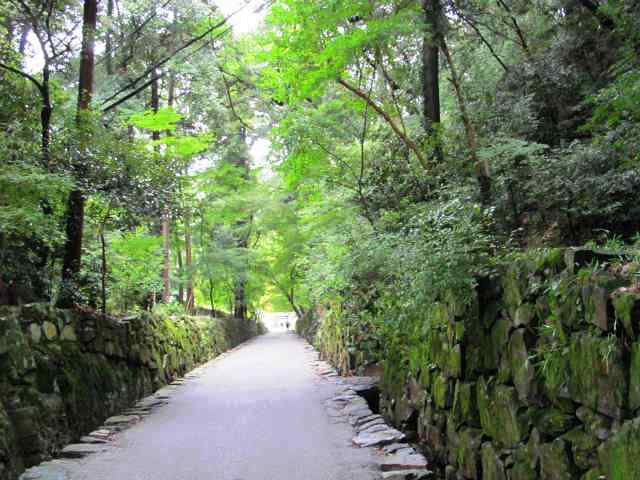 ![]() 両サイドに苔むした石垣がきれいです! この坂は琴坂と呼ばれています。 |