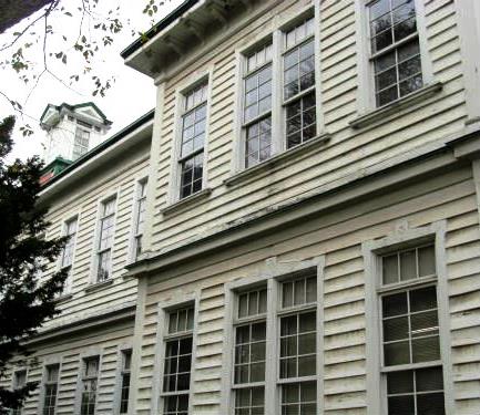 ![]() 『古河講堂』 中央道路の東の一角にがあり、、国登録有形文化財に指定。 |