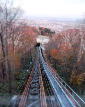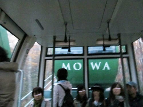 ![]() 世界初!森林体験型のミニケーブルカー。 2両編成で運行するもーりすカーに乗り換えて山頂に向かいます |