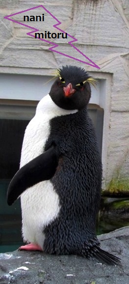 ![]() 愛らしいペンギン達ですが、いわとびペンギンの面構えは少しこわい〜い! |