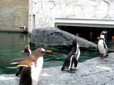 ![]() 人間が水槽の中?外からペンギンが泳いで来るんですが・・なかなか来ませんね! |