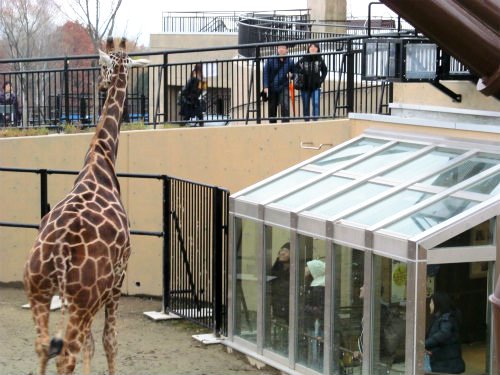 ![]() キリンの目線にも合わせて。間近に見られ新たな感動があります。 |