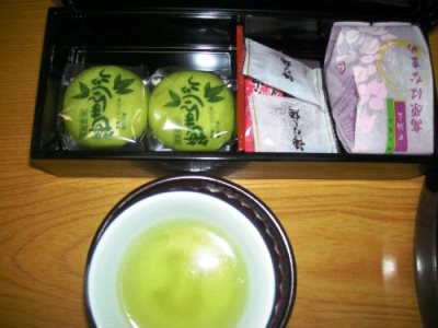 ![]() 部屋のお茶請けはササ饅頭 |