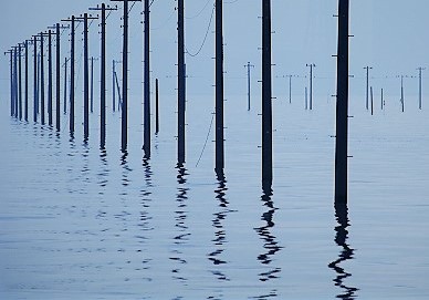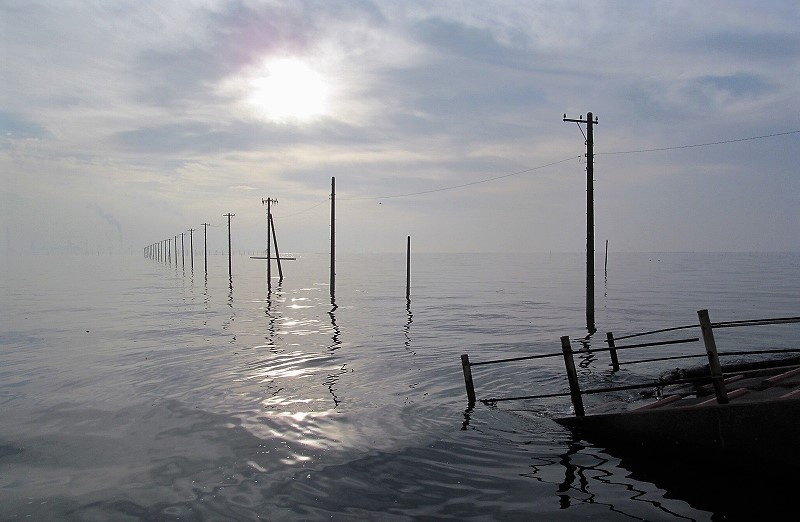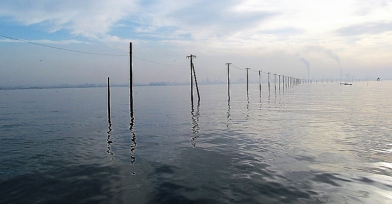 ![]() 海から電柱が伸びているように見えるとても不思議な光景 |