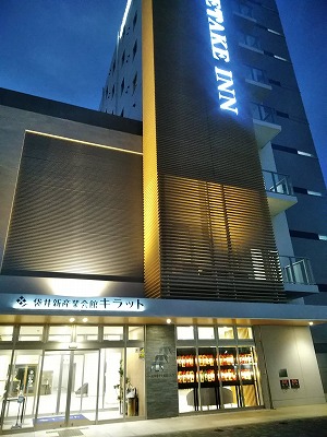 東海道袋井宿近くのホテルはJR袋井駅の真ん前でした(2段ベッド上で寝ましたが夜中のトイレが大変!)