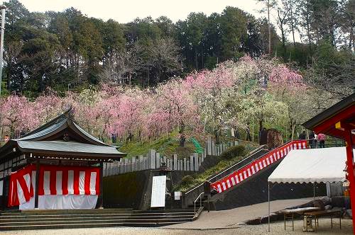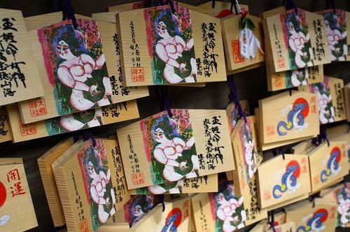 犬山市『大縣神社』 尾張開拓の祖神 大縣大神を祀る尾張地方最古の神社。 絵馬を見て驚く姫野宮の姫は裸? 斜面に広がる340本のしだれ梅 このミニ鳥居をくぐると、合格、厄除け、良縁祈願などに御利益がある? 曇り空から陽が差してくると景色が生える