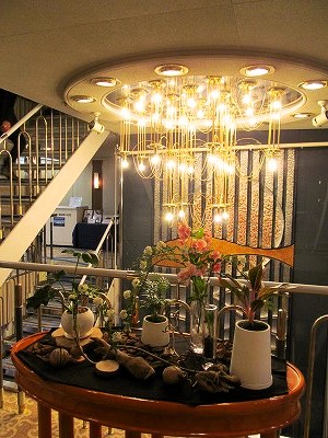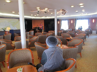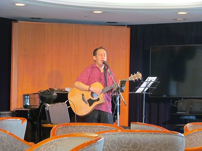 食事前のカクテルパーティー:ハウスバンドはウクレレ演奏 乗船客300人で、ここは空き々5人でした。
