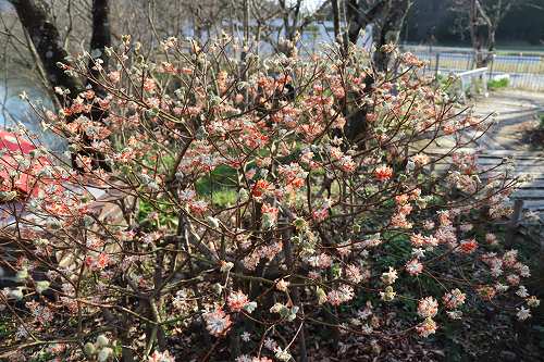 珍しい赤色のミツマタ 普通は白色ですね!
