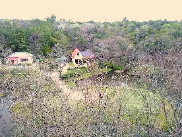 ミツバツツジが鮮やかです 『サツキとメイの家』 予約有料なので展望台(エレベーター有)より