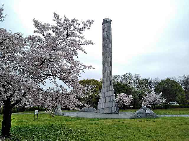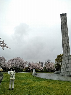 平和公園内の桜を見ながら散策していたら『虹の塔』が目に入った