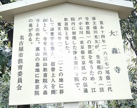 本尊は阿弥陀如来。二代藩主光友の生母歓喜院乾の方の菩提寺として乾の方の故郷大森に寛文元年(1661)創建。